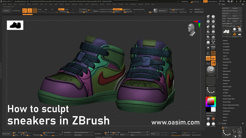 Over two hours of in-depth sneaker sculpting using ZBrush